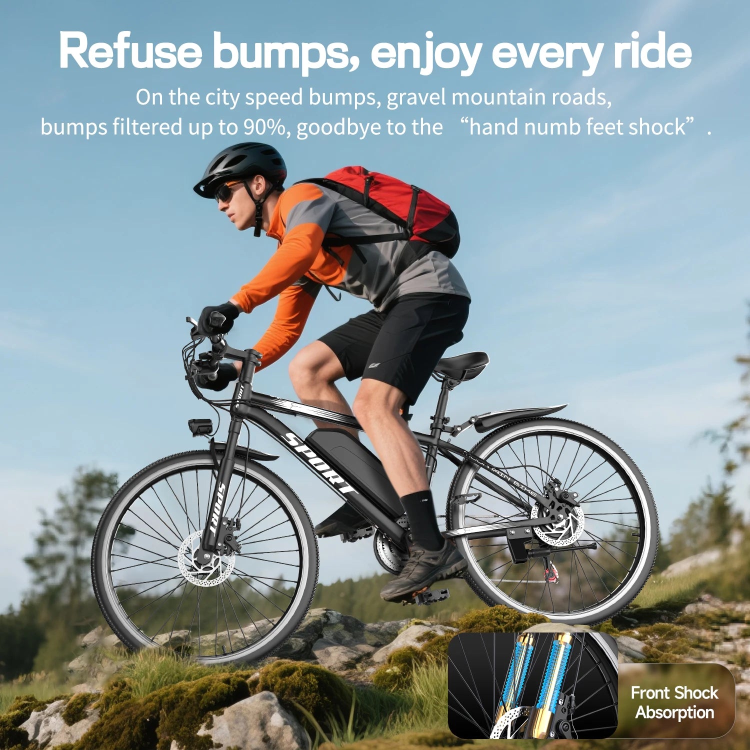 26''Electric Bike,Motorcycle 700W Peak Motor,20MPH 35Miles Electric Mountain Bike, 480Wh Removable Battery, 7-Speed& LCD Display