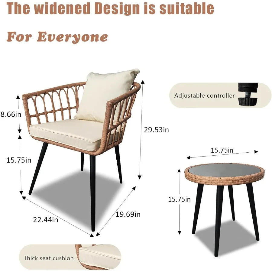 - Includes two comfortable chairs and a glass-top table for easy, intimate outdoor dining, coffee breaks, and casual conversations in your yard or balcony.