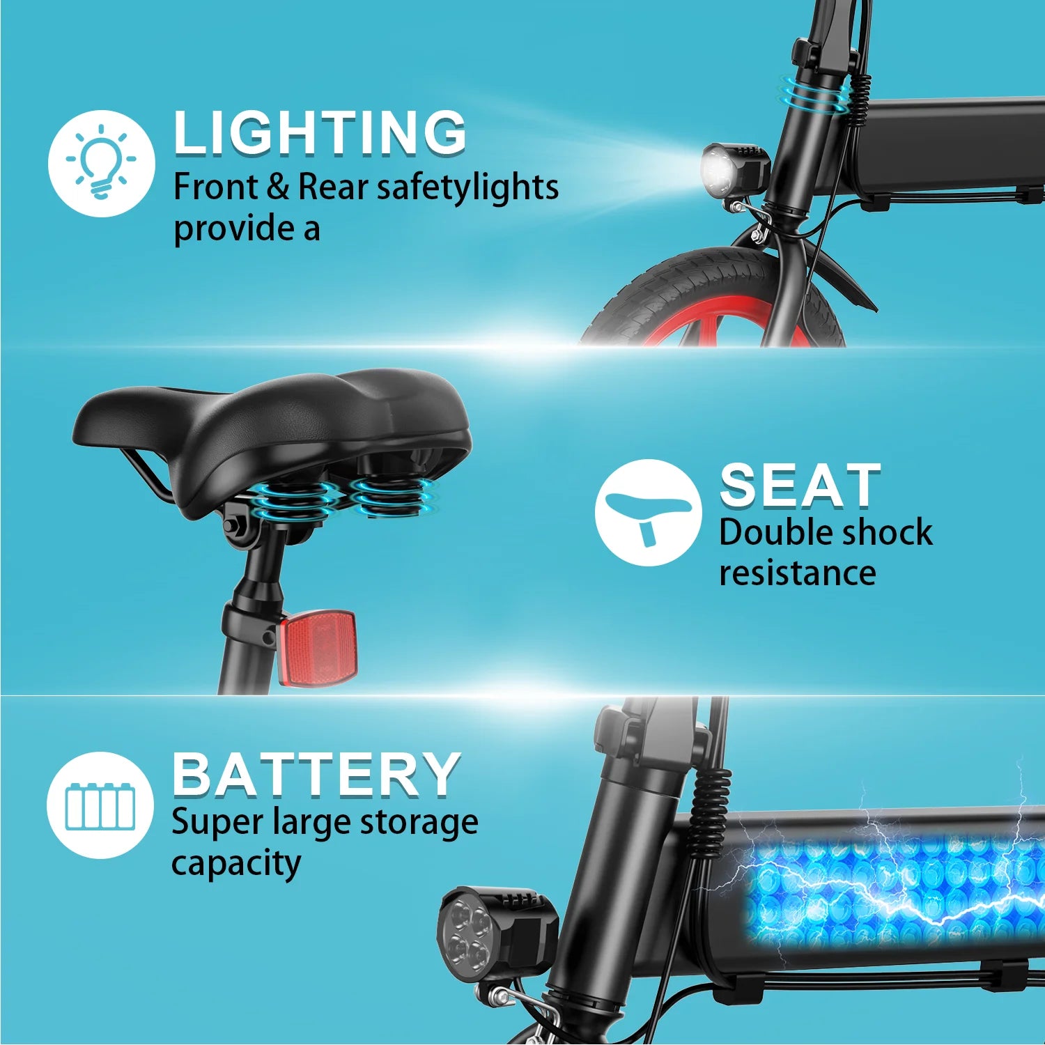 350W high-speed gear motor adult electric bicycle, foldable electric bicycle 15.5 miles lightweight small men's and women's elec