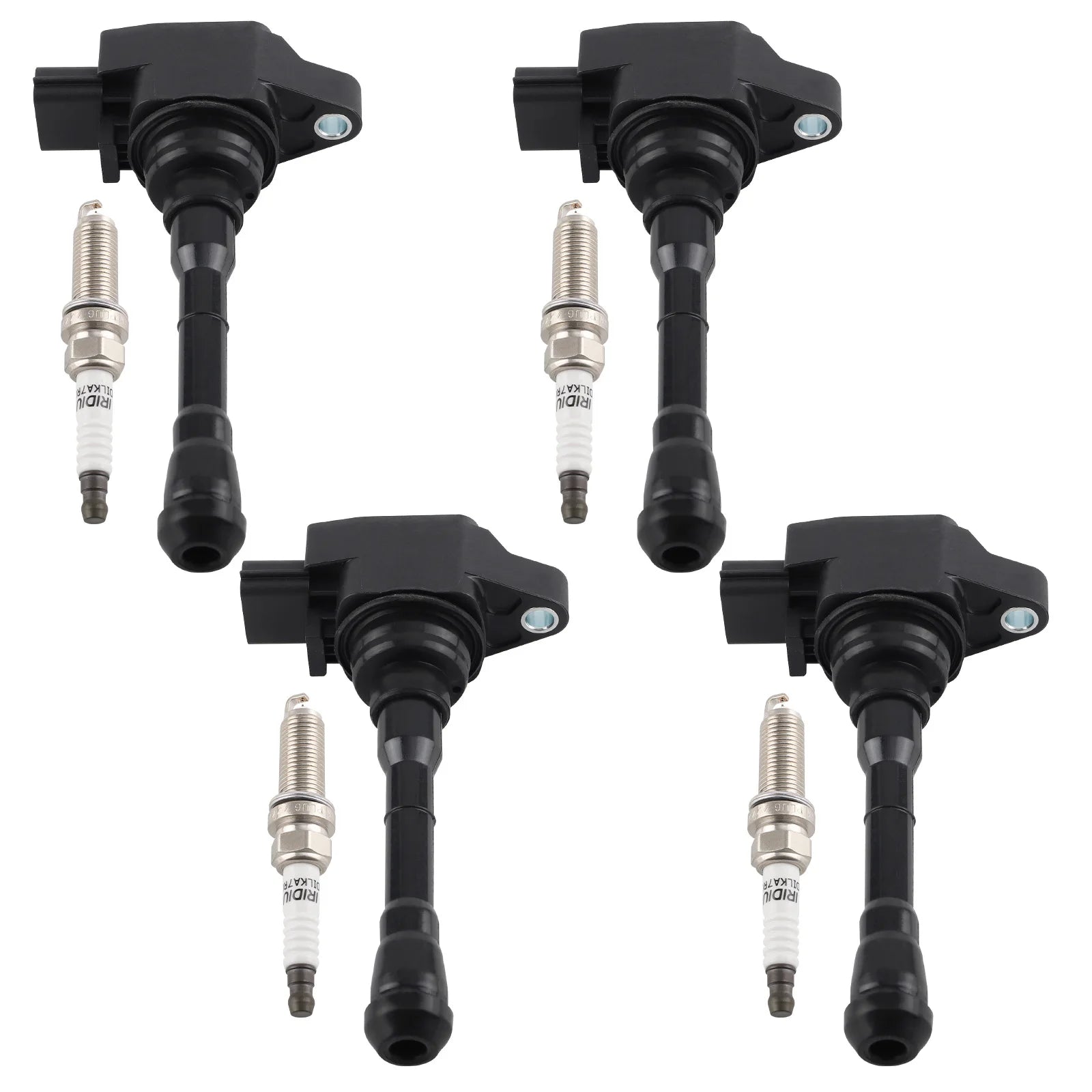 Upgrade your Nissan Juke with a complete 4-piece ignition coil and iridium spark plug set for peak ignition efficiency.