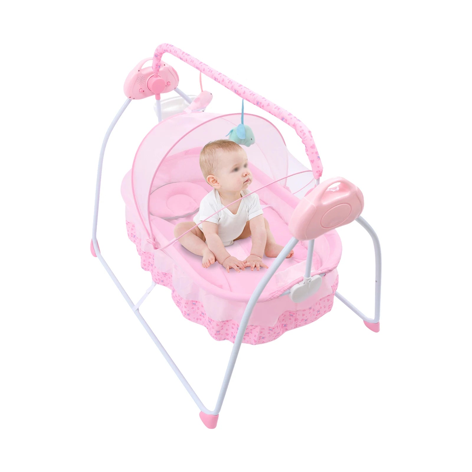Baby Cradle Swing Remote Auto Swing Bed Cradle Portable Swing Stand Seat For 0 To 18 Months Baby Five Gears Adjustable Pink No Battery