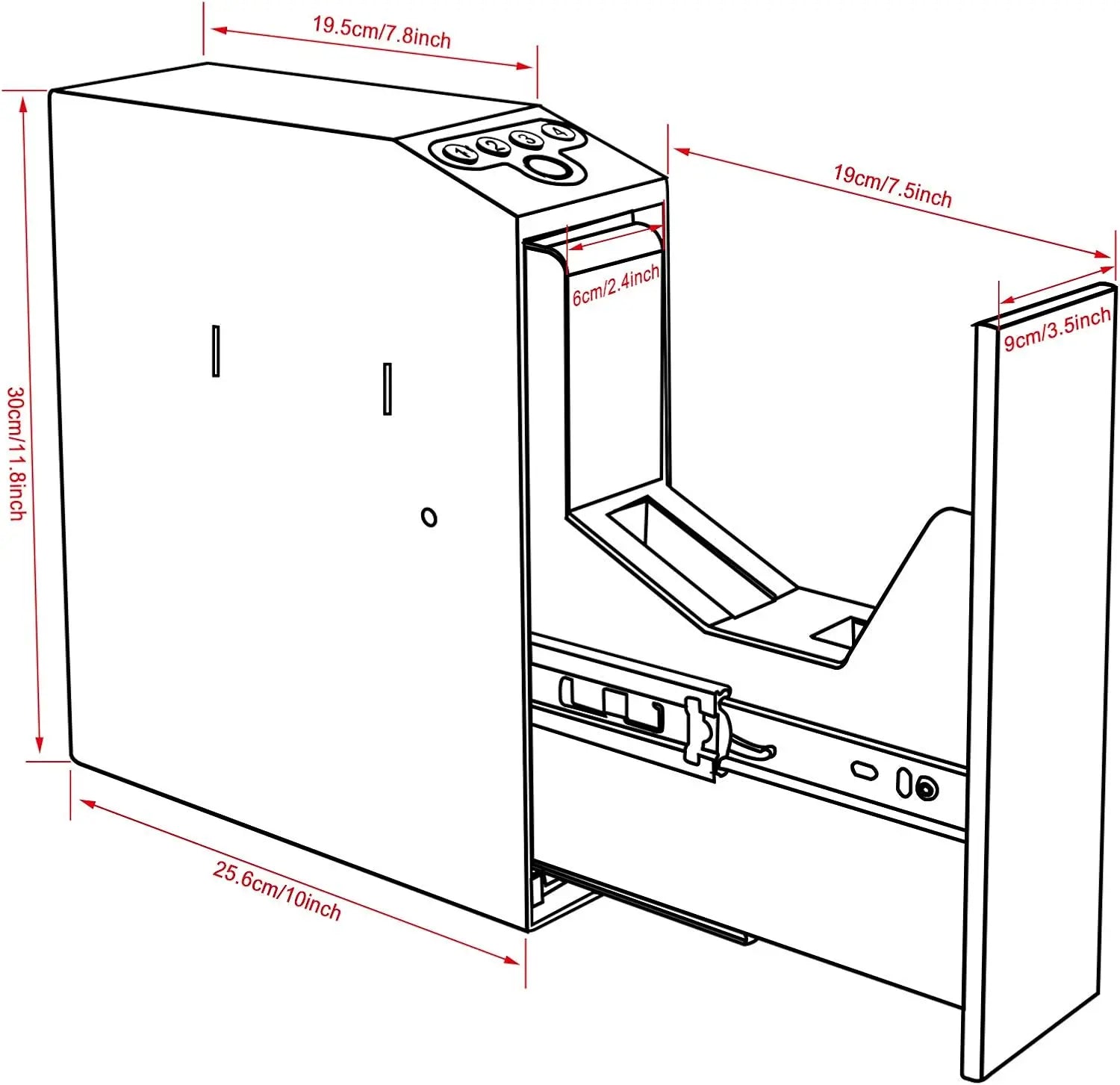 This handgun safe accommodates most standard handguns up to 9.5 inches in length and includes space for an additional magazine, allowing you to keep everything you need in one secure location. With multiple mounting configurations available—whether from the top, right, or left—you can customize the setup to fit your space perfectly.