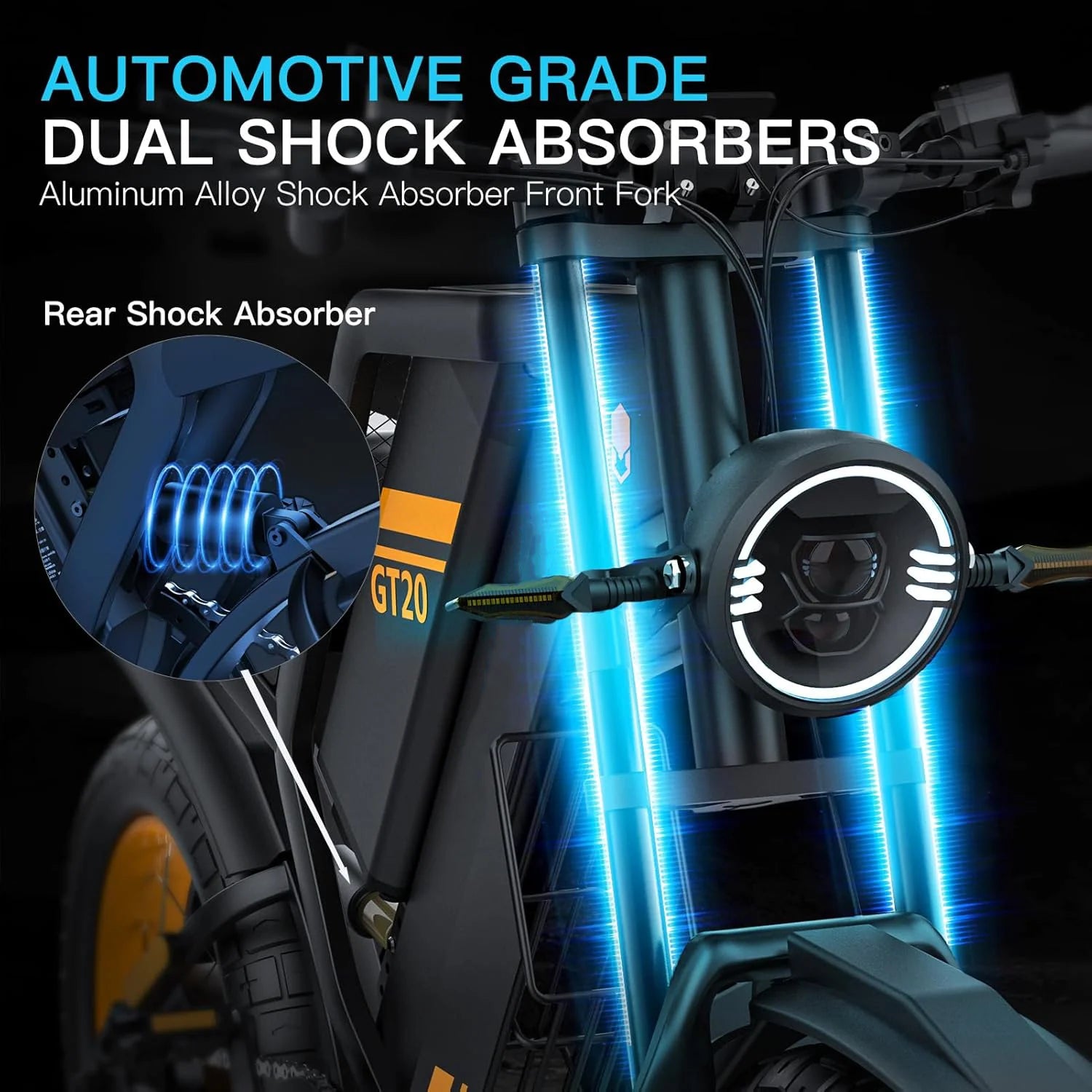 The GT20 e-bike stands out in the market with its robust construction and stylish design, making it not just a mode of transport, but a lifestyle choice. The fat tires provide excellent traction, ensuring safety and comfort during every ride. Whether you're commuting to work or embarking on a weekend adventure, this bike is your ideal companion.