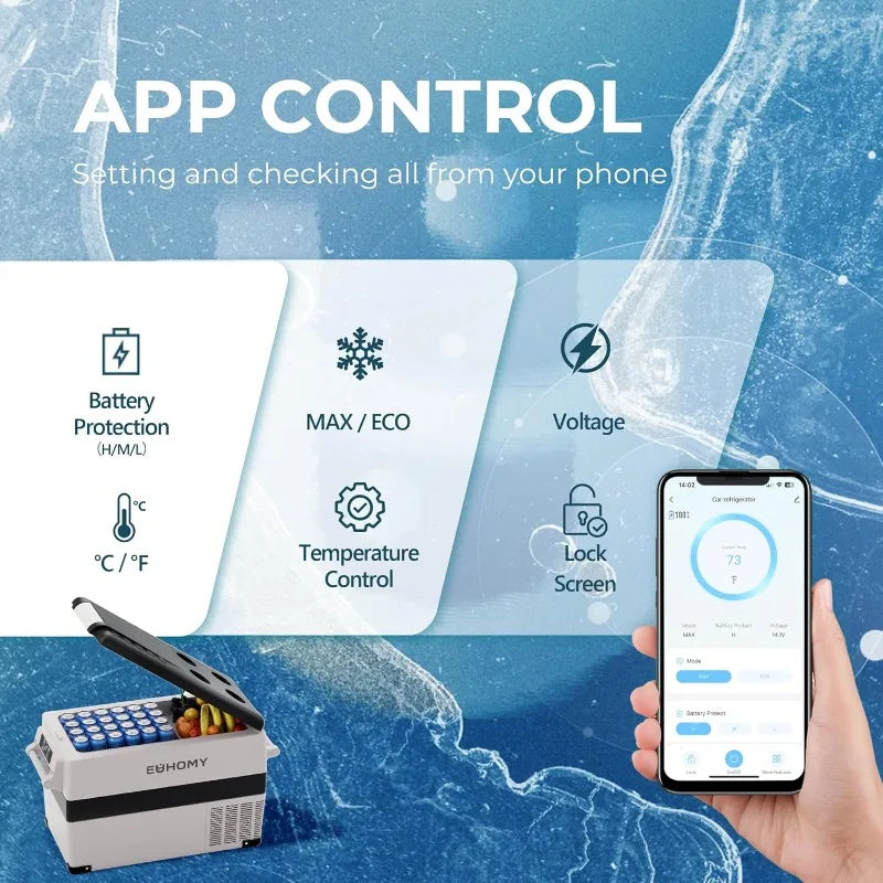 Euhomy 12 Volt Refrigerator 47QT Electric Cooler APP Control 12V Fridge Portable Freezer 12 24V DC 110 240V
