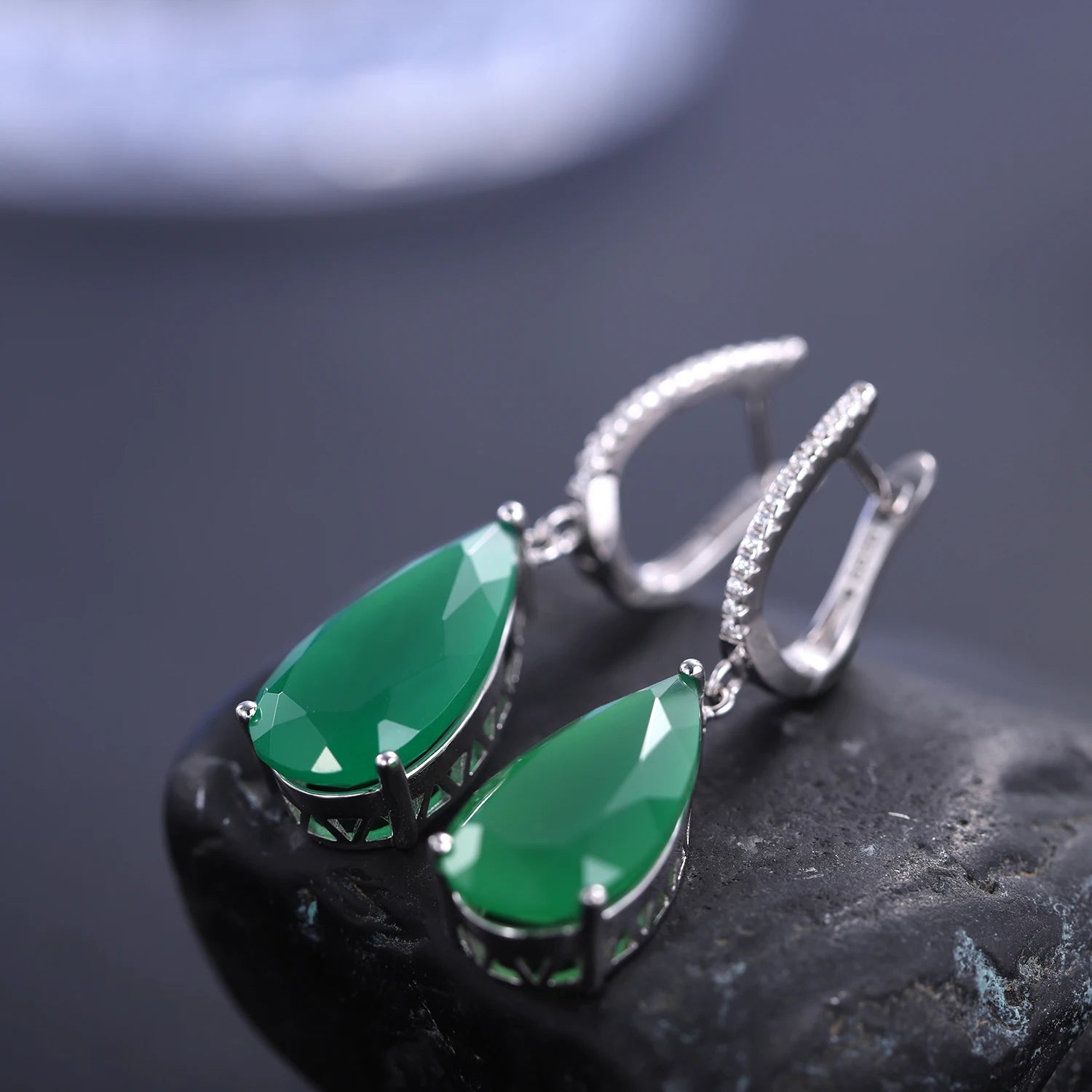 Elevate every moment with GEM'S BALLET Green Agate Drop Earrings, where luminous stones meet timeless sterling silver for a radiant, versatile look.