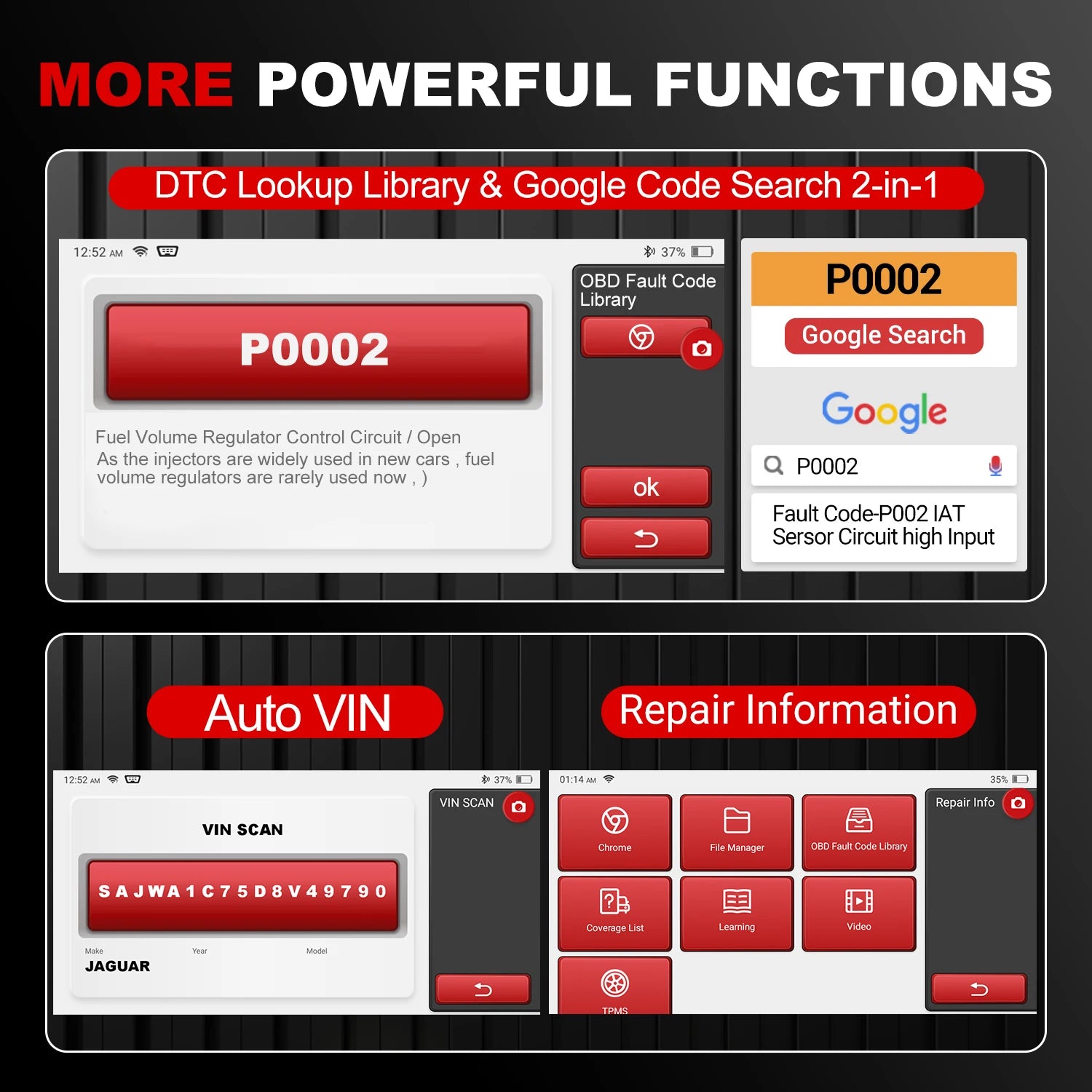 - All-System Diagnostic Capability: Effortlessly scan and read diagnostic trouble codes (DTCs) across all systems, including engine, transmission, ABS, and airbags.