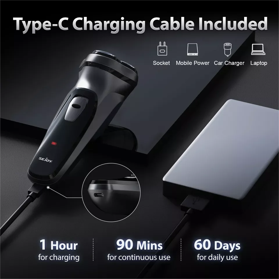 SEJOY Rechargeable Wet And Dry Electric Shaver Rotary Head Trimmer For Men